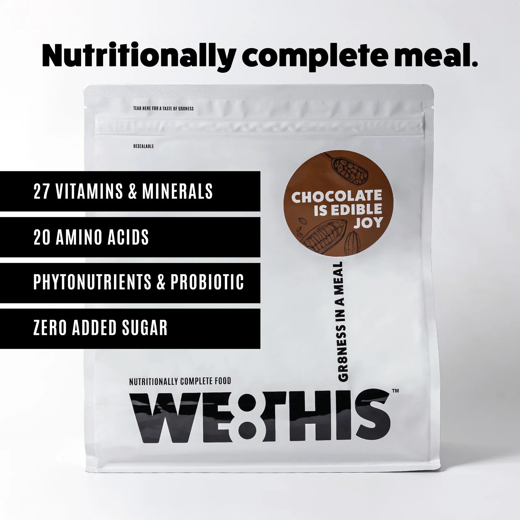 WE8THISᵀᴹ is a nutritionally complete meal that goes beyond satisfying your hunger. It is designed to nourish your body comprehensively. Packed with nutrients, WE8THISᵀᴹ provides